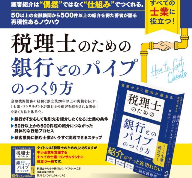 代表・東川仁の新刊『税理士のための銀行とのパイプのつくり方』(日本実業出版社)が発売されました。